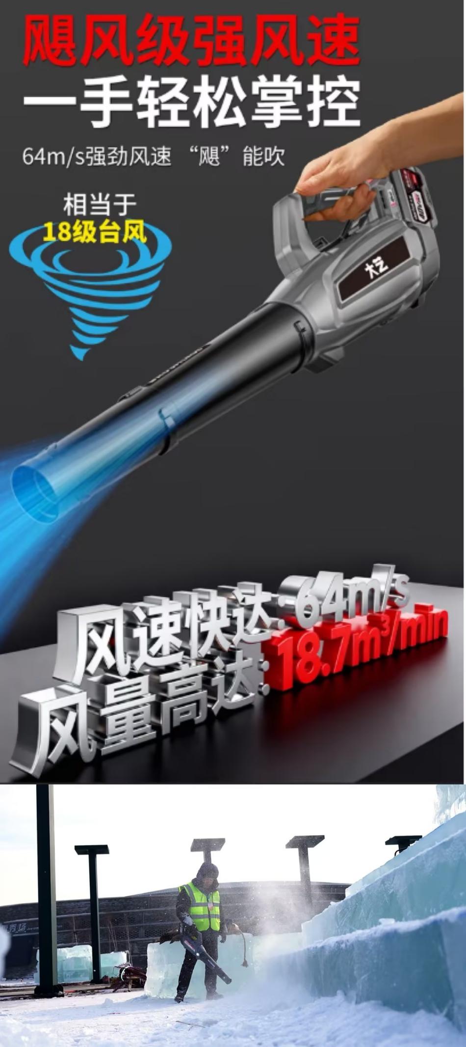 除了切割,冰雪雕琢過程中的碎冰清理、表面整理同樣關(guān)鍵。大藝G40-660鋰電無刷吹風(fēng)機(jī),憑借大功率無刷電機(jī)、涵道結(jié)合蜂窩網(wǎng)格設(shè)計(jì),風(fēng)量輸出強(qiáng)勁。一鍵增壓模式下,瞬時(shí)風(fēng)速可達(dá)64m/s,堪比18級(jí)臺(tái)風(fēng),能快速吹除冰屑積雪,讓細(xì)節(jié)呈現(xiàn)更清晰。多種規(guī)格出風(fēng)筒、便攜背帶、舒適包膠手柄等人性化設(shè)計(jì),更讓長(zhǎng)時(shí)間戶外作業(yè)輕松省力,成為冰雪工匠的高效清雪伙伴。